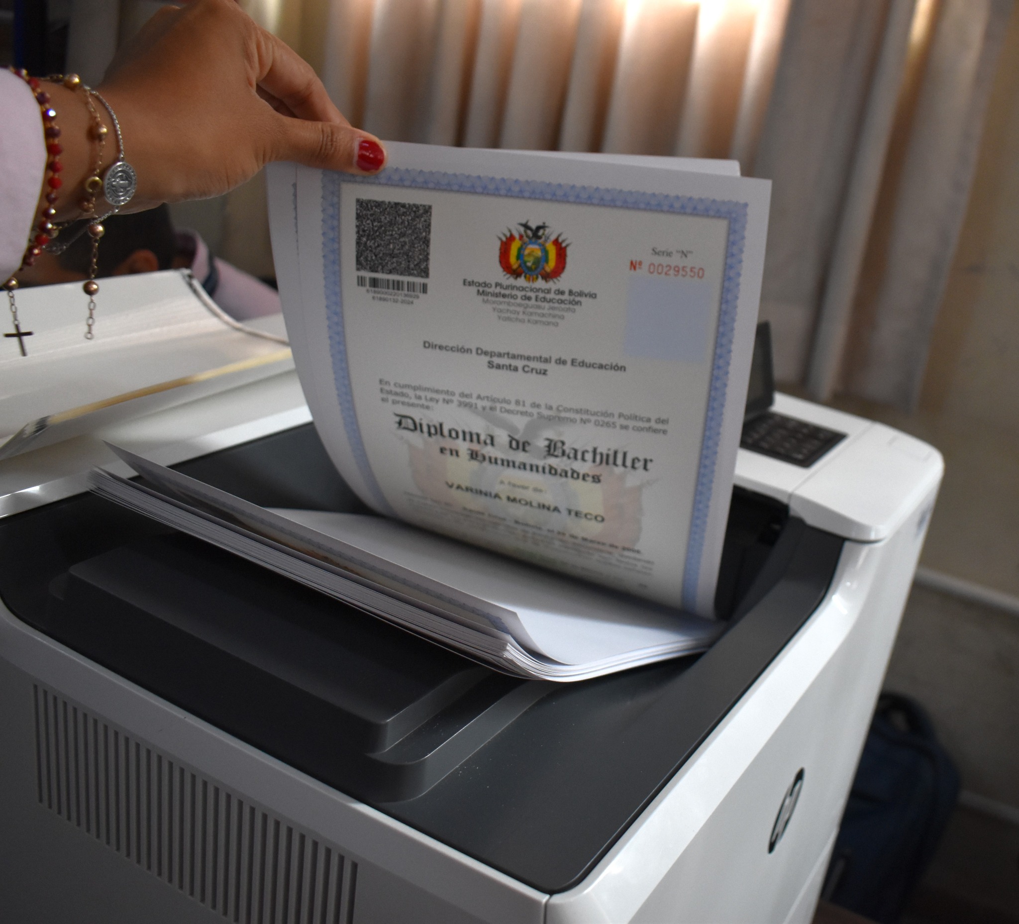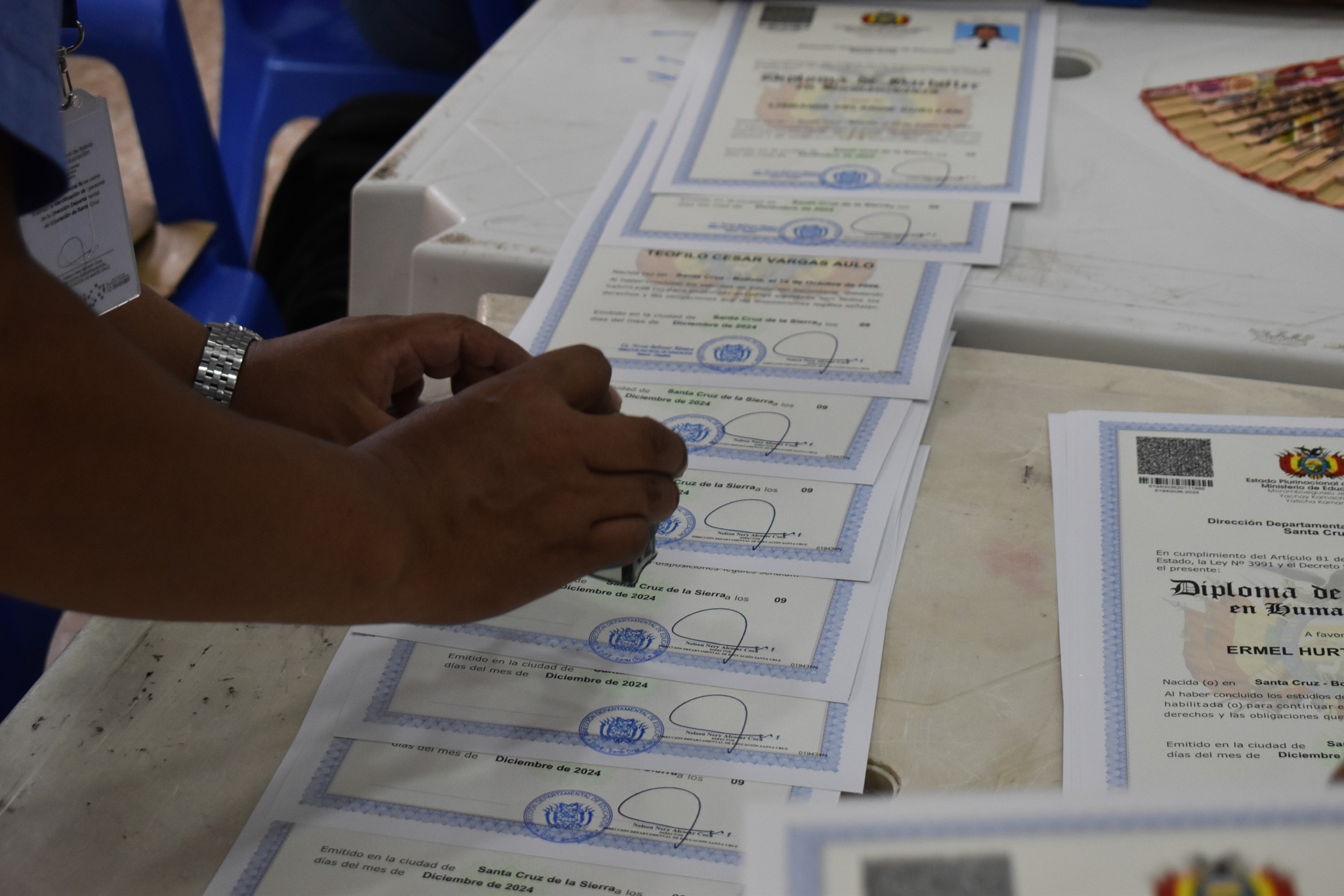 Informamos que el proceso de impresión de los diplomas de Bachilleres de la Gestión 2024 en la Dirección Departamental de Educación se ha llevado a cabo bajo un cronograma que comenzó el 21 de noviembre y finalizó el 6 de diciembre.